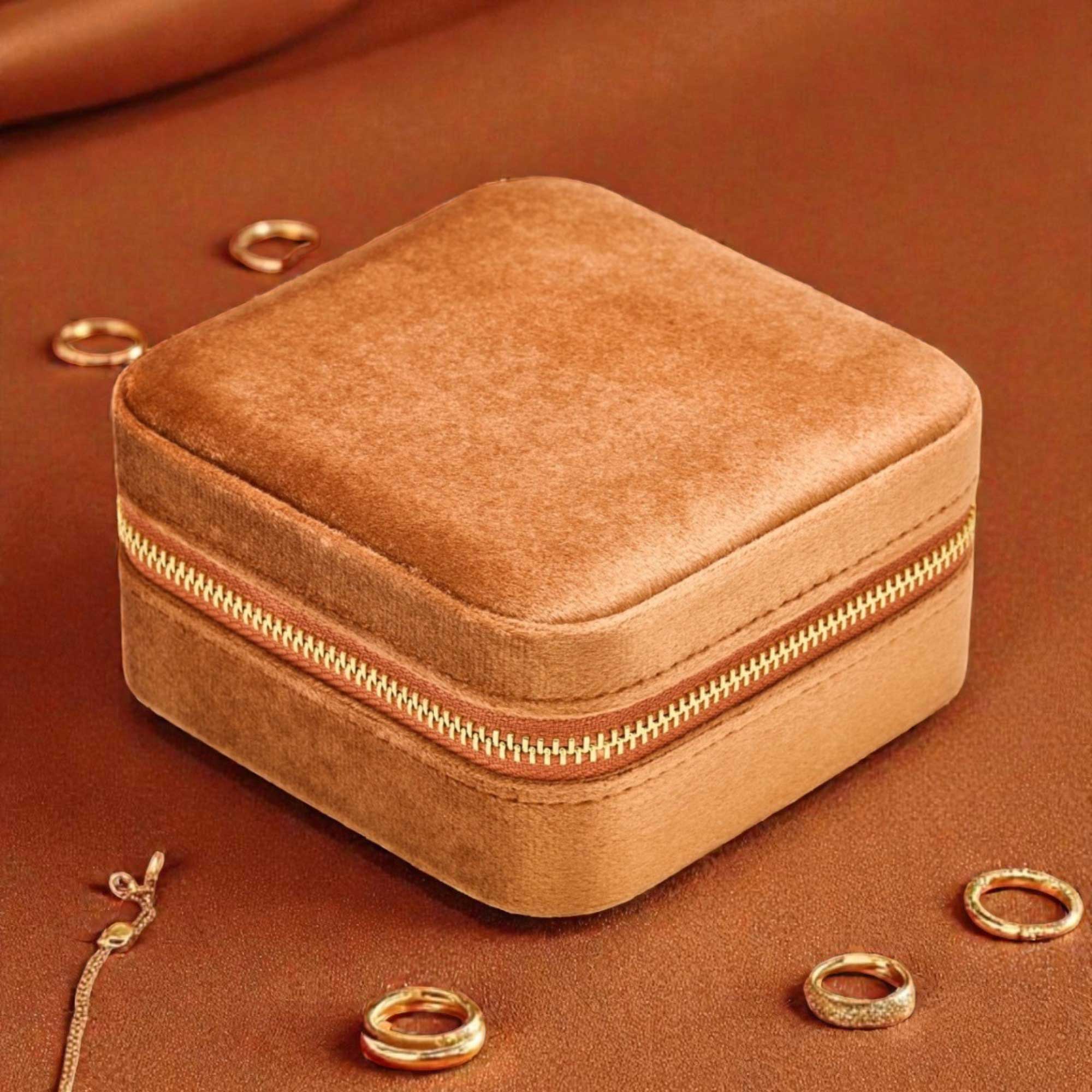 Βελούδινη κοσμηματοθήκη σε χρώμα χάλκινο. 10x10x5εκ.