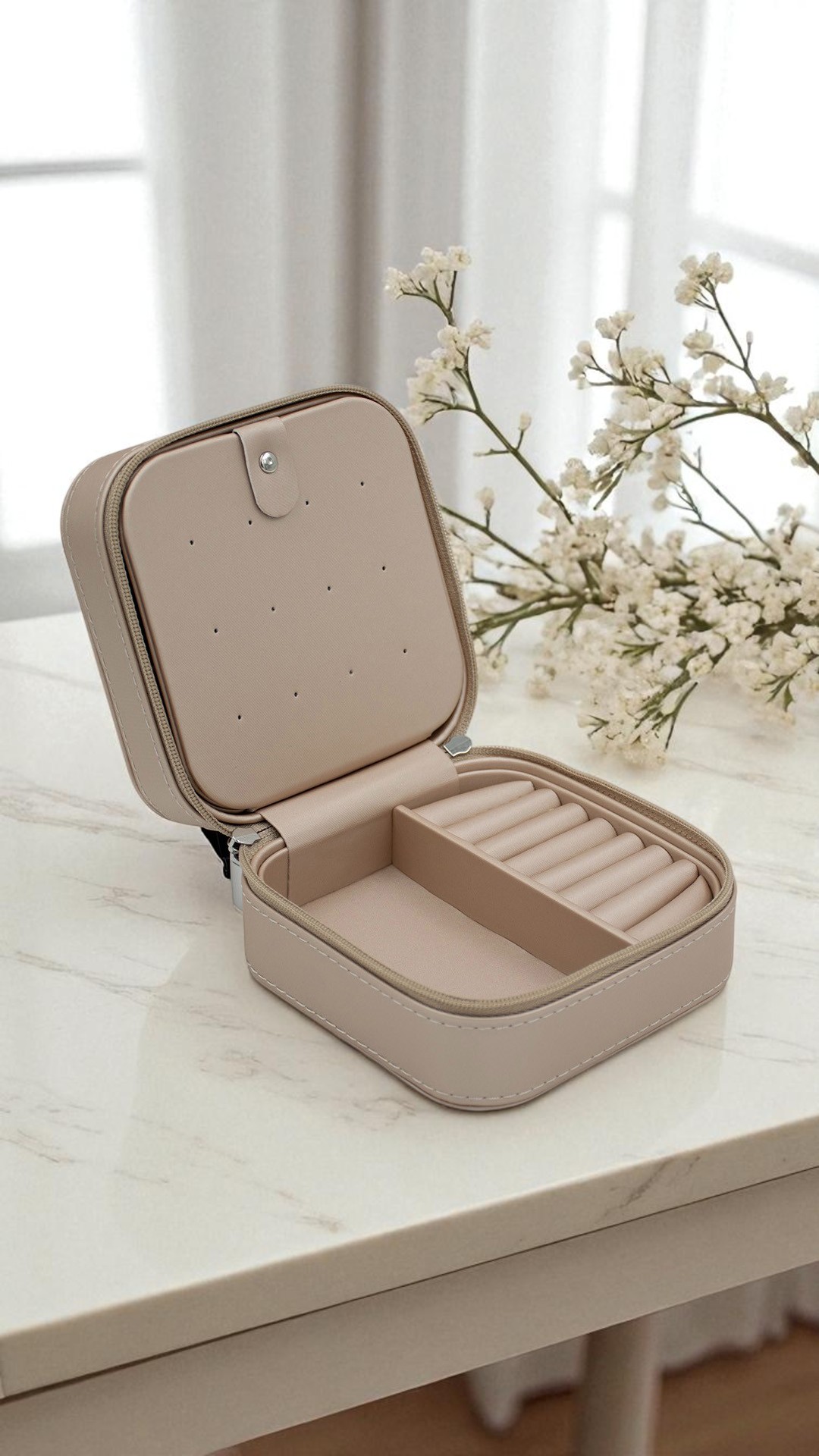 Κοσμηματοθήκη σαμπανιζέ χρώματος, από δερματίνη υψηλής ποιότητας, μεσαίου μεγέθους, ιδανική για ταξίδια αλλά και για αποθήκευση των αγαπημένων σας κοσμημάτων. Υλικά και κατασκευή εξαιρετικής ποιότητας.