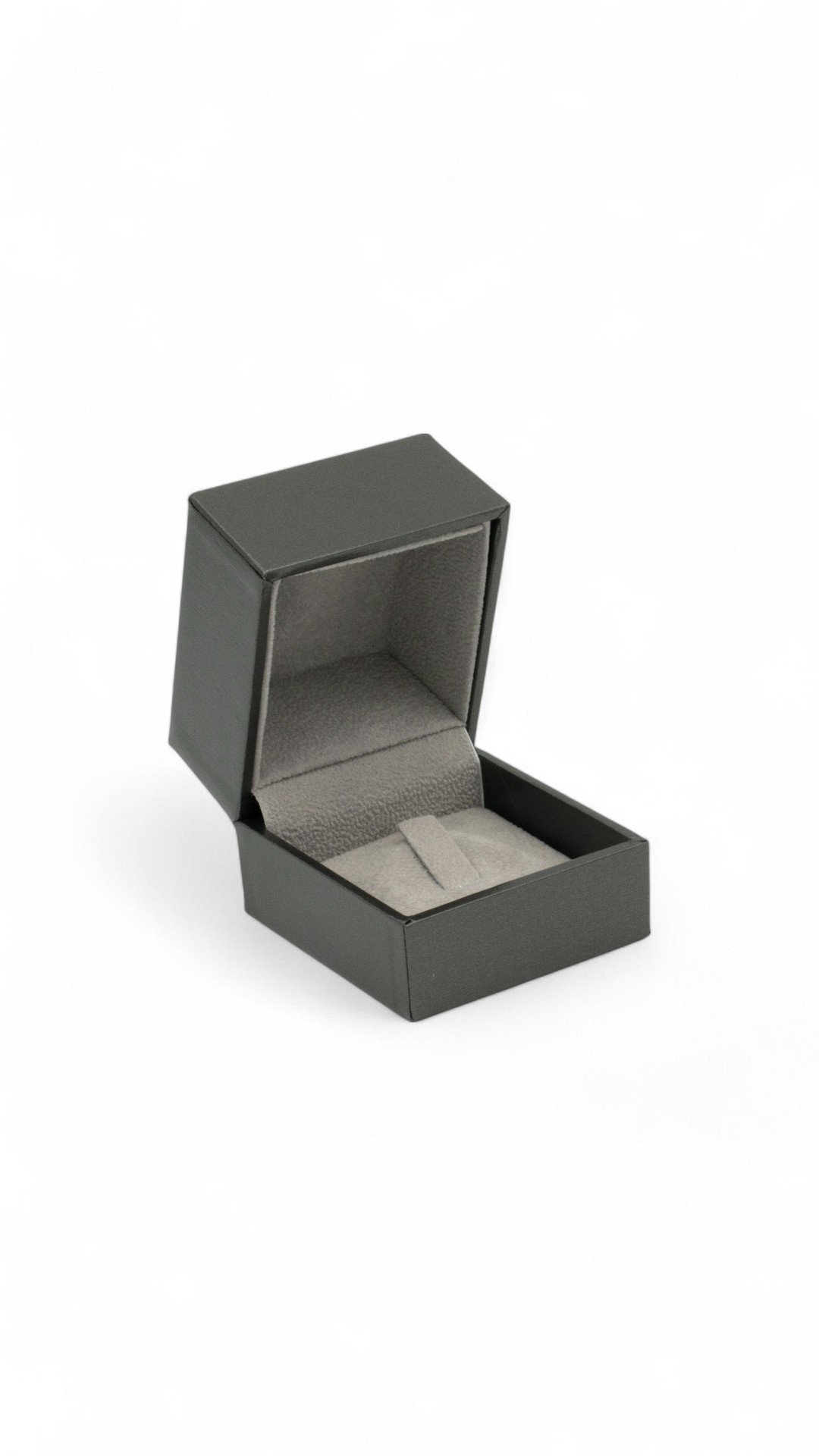 Μοντέρνο, ανθρακί κουτί για δαχτυλίδι, με εσωτερικό από γκρι καστόρ, για τις ξεχωριστές στιγμές σας. Ιδανικό για πρόταση γάμου, για αποθήκευση οικογενειακών κειμηλίων αλλά και για προσφορά οποιουδήποτε δαχτυλιδιού ως δώρο.