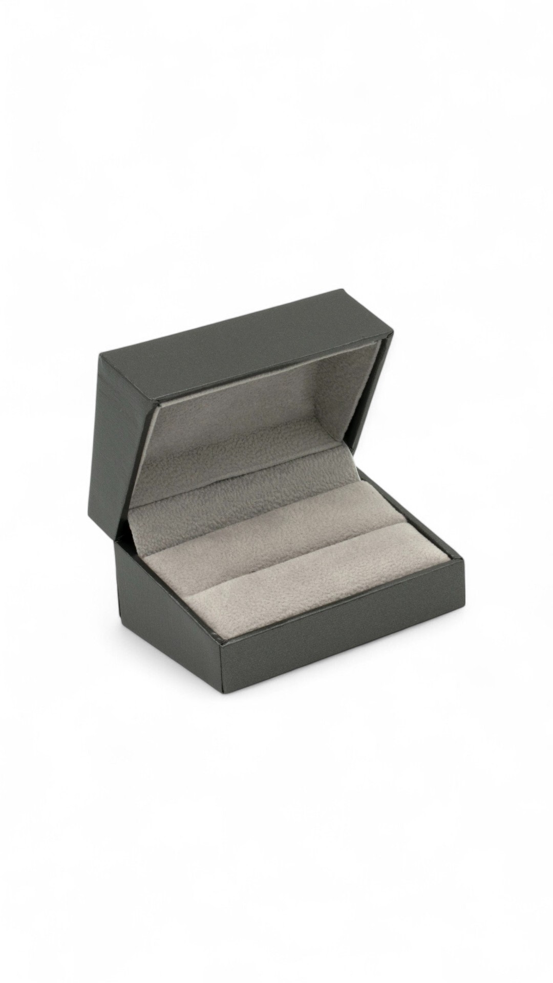 Μοντέρνο, ανθρακί κουτί για βέρες, με εσωτερικό από γκρι καστόρ, για την πιο ξεχωριστή στιγμή σας.